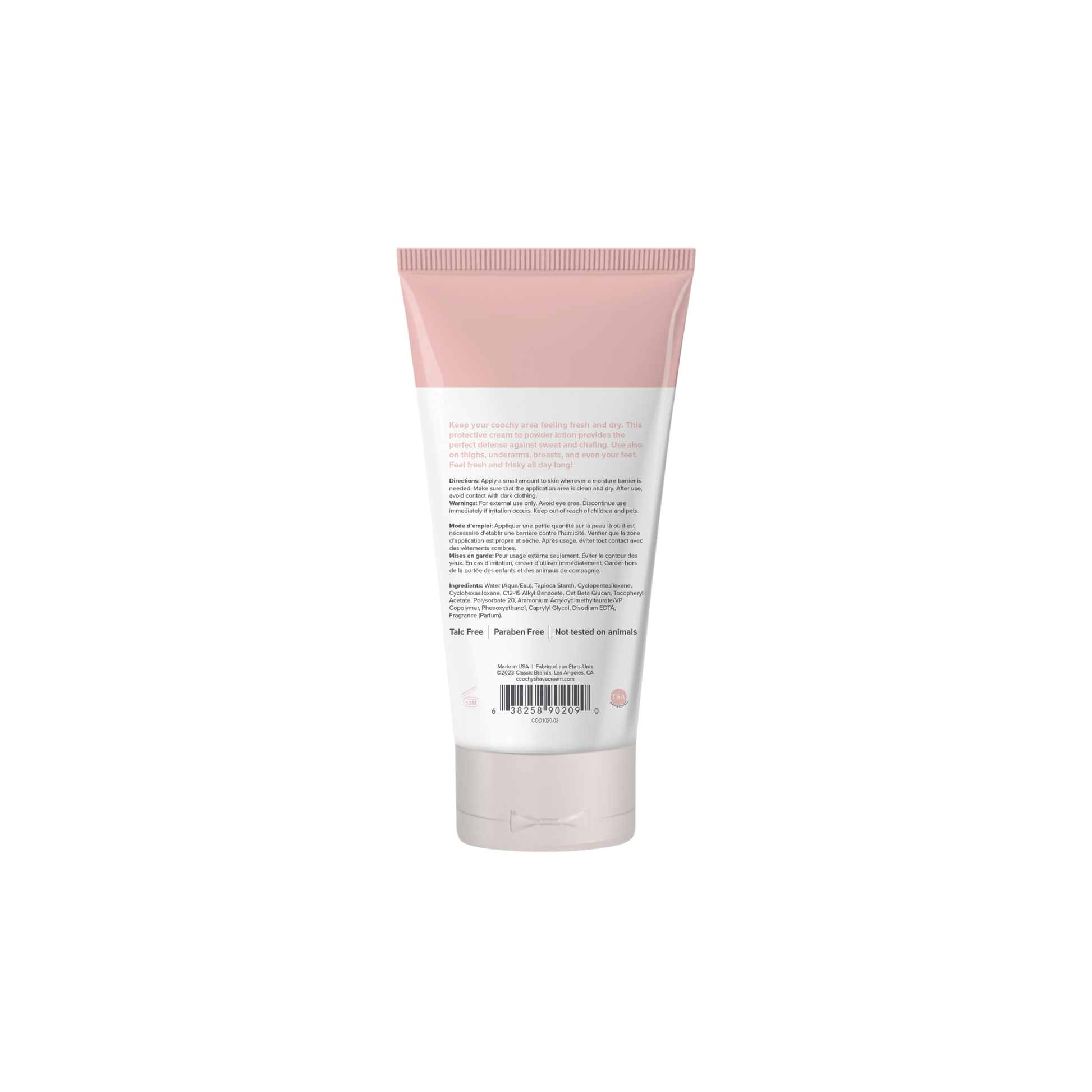 Keep your coochy area feeling fresh and dry. This protective cream to powder lotion provides the perfect defense against sweat and chafing. Use also on thighs, underarms, breasts, and even your feet. Feel fresh and frisky all day long!