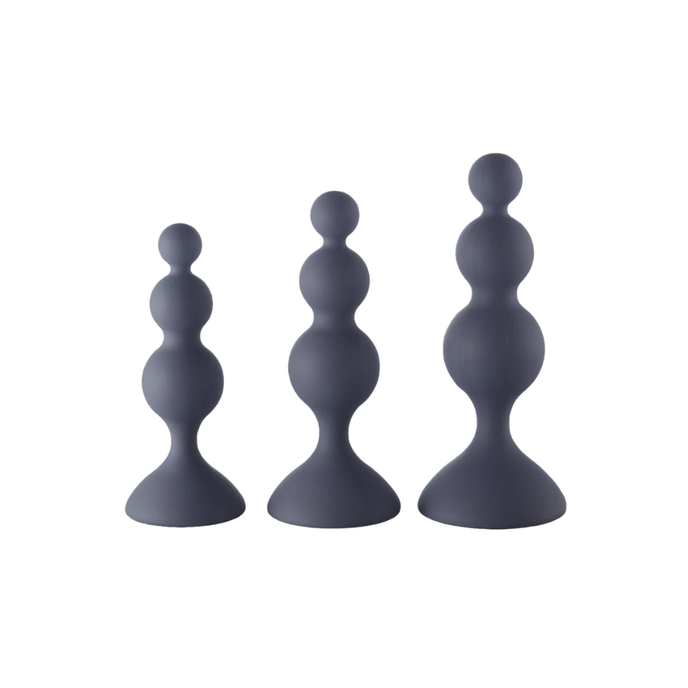 Find your fantasy with the Beaded Trainer Kit. Made of silky soft, flexible silicone, they are the perfect way to work up to your peach play goals. Each trainer is graduated in size, allowing you to start small and move up sizes as you become more comfortable. The beaded shape adds an extra level of comfort and the flared suction-cup base allows you to easily play on a variety of surfaces.