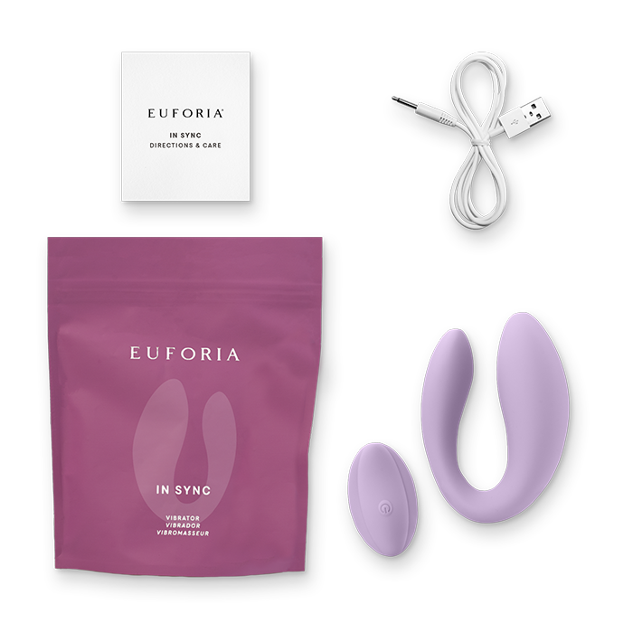 In Sync is a unique vibrator that provides an experience unlike any other. While perfect for masturbation, where In Sync truly earns its name is when it’s worn during sex. Its curved design allows for vaginal insertion as well as simultaneous clitoral stimulation, and enough room for your partner or another vibrator or dildo, providing extra girth for you, and a tighter experience for them.